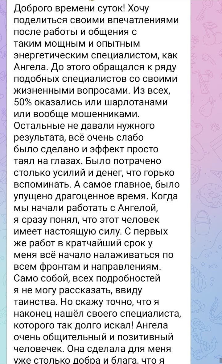 Помните, что горе разрушает человека изнутри и съедает его. Обратившись ко мне за помощью, вы исцелитесь духовно и получите ответы на вопросы, которые давно вас беспокоили. Мое обращение к вам – это и есть подсказка судьбы.